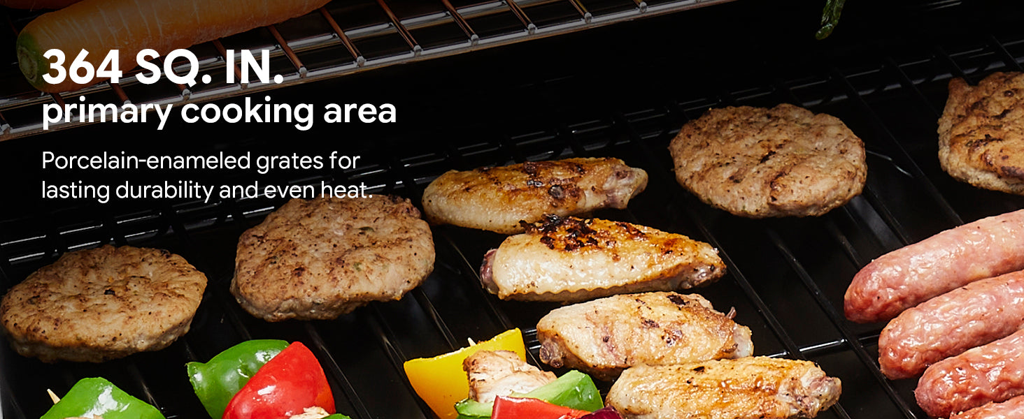 - Efficient Heat & Temperature Monitor: This 3 burner gas grill's porcelain-enameled grates transfer heat quickly, while its matching porcelain-enamel lid with built-in thermometer retains warmth and lets you monitor cooking—ensuring perfectly grilled results every time