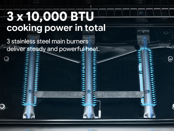 - Versatile Outdoor Use: Lightweight and portable, this 3 burner gas grill delivers consistent, reliable performance for backyards, patios, gardens, and poolside gatherings alike. Ideal for all seasons, it turns outdoor cooking into an easy, fun, and convenient experience no matter where you use it