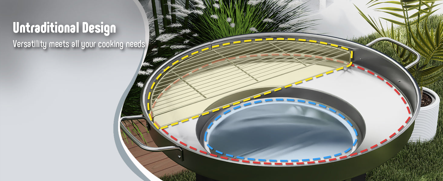 - Spacious 23-Inch Cooking Stage: Effortlessly host family feasts or entertain crowds with our expansive concave griddle. Its generous surface lets you cook complex dishes easily, slashing meal prep time and keeping everyone eating together during busy gatherings or outdoor events.