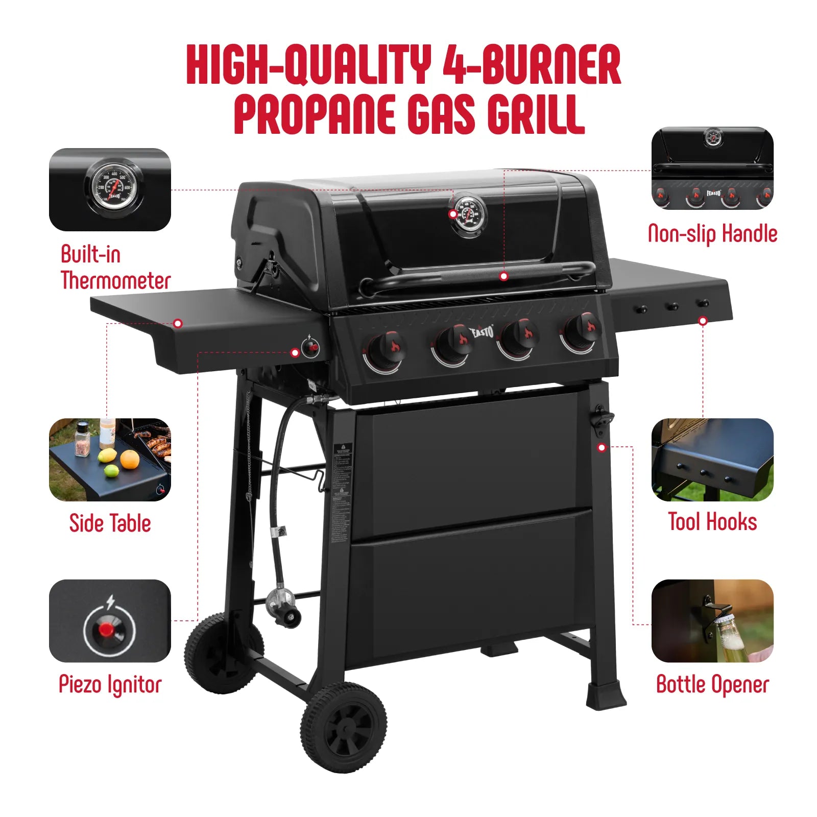 - Stainless Steel Burners: This propane gas grill is built with 4 durable stainless steel burners, with a total heat output of 36,000 BTU,ensuring long-lasting performance and even heat distribution