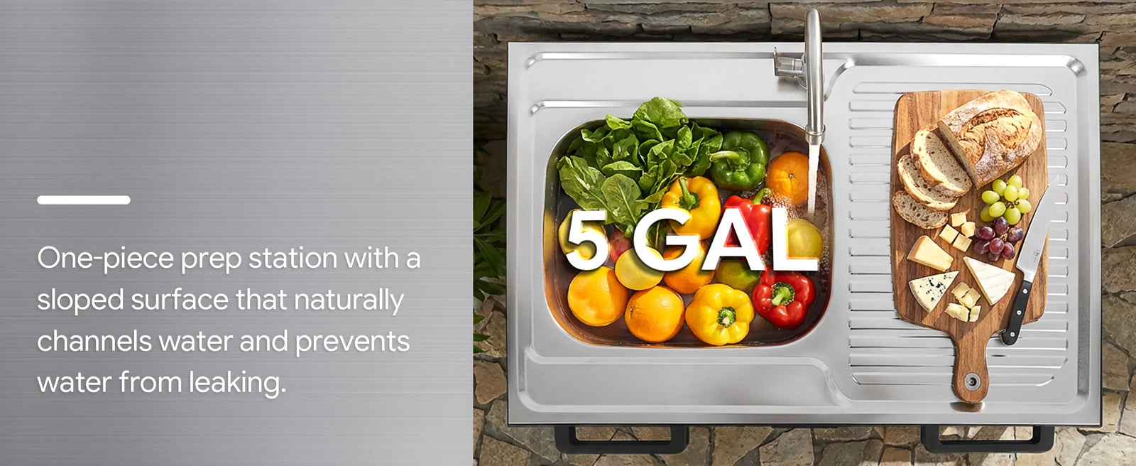 - 304 Stainless Steel: Table topis made of 304 stainless steel for long term using and easy cleaning. Can contact water or food directly in safe. Integrated sink connected with drainboard seamlessly. Perfect as your outdoor kitchen sink station and prepare your feast on it.