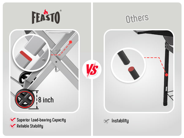 - FOLDING CART & LARGE-SIZED WHEELS - Quick-fold cart with thick legs for stability and ultimated portability. Large wheels roll easily over grass, patios, and rough ground, and compact storage. Dual side table provides extra working space.