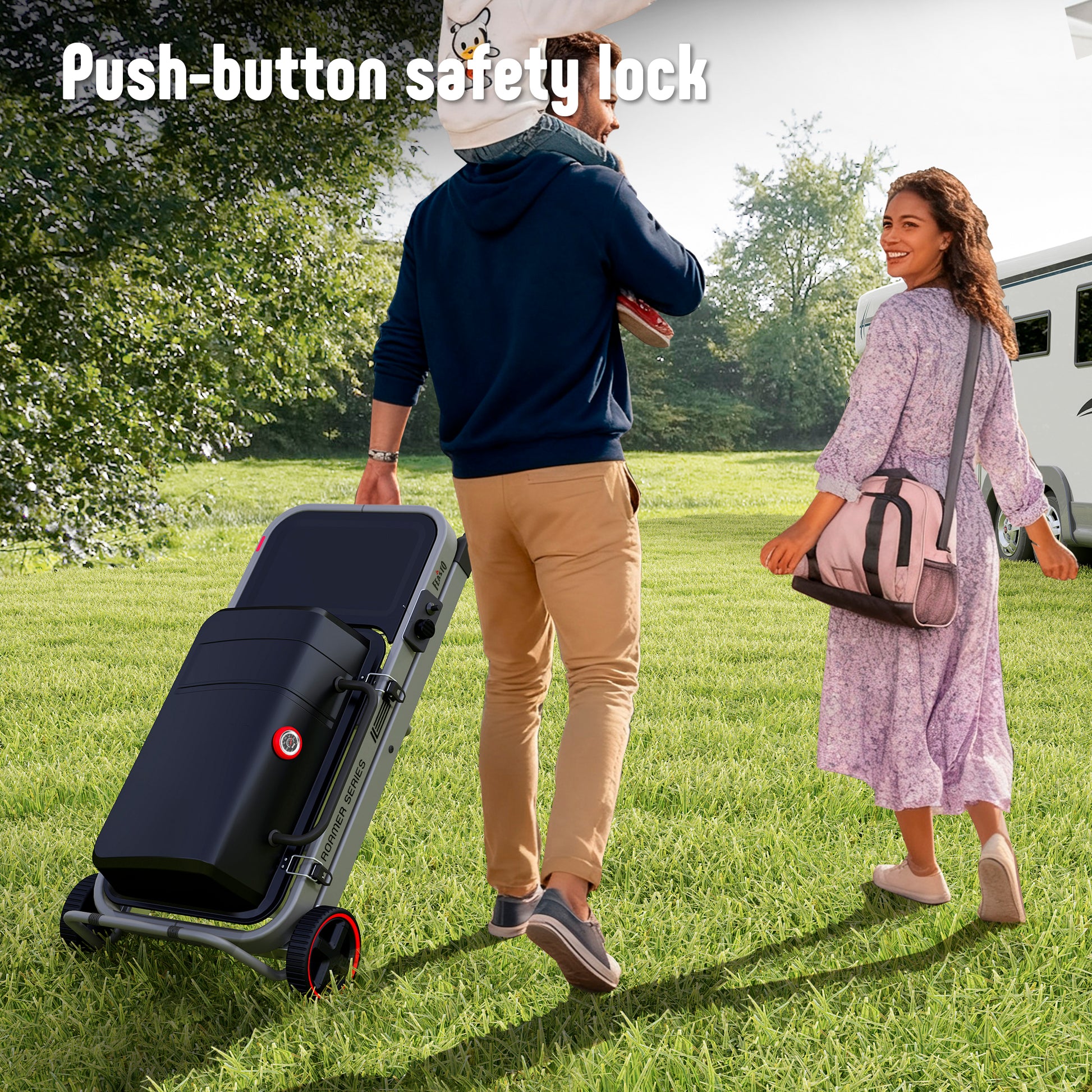 - POWERFUL 13000 BTU HEAT OUTPUT - This on-the-go foldable gas grill with push button ignition generates intense, consistent heat for quick searing and steady grilling. Perfect for steaks, burgers, or preparing full meals.