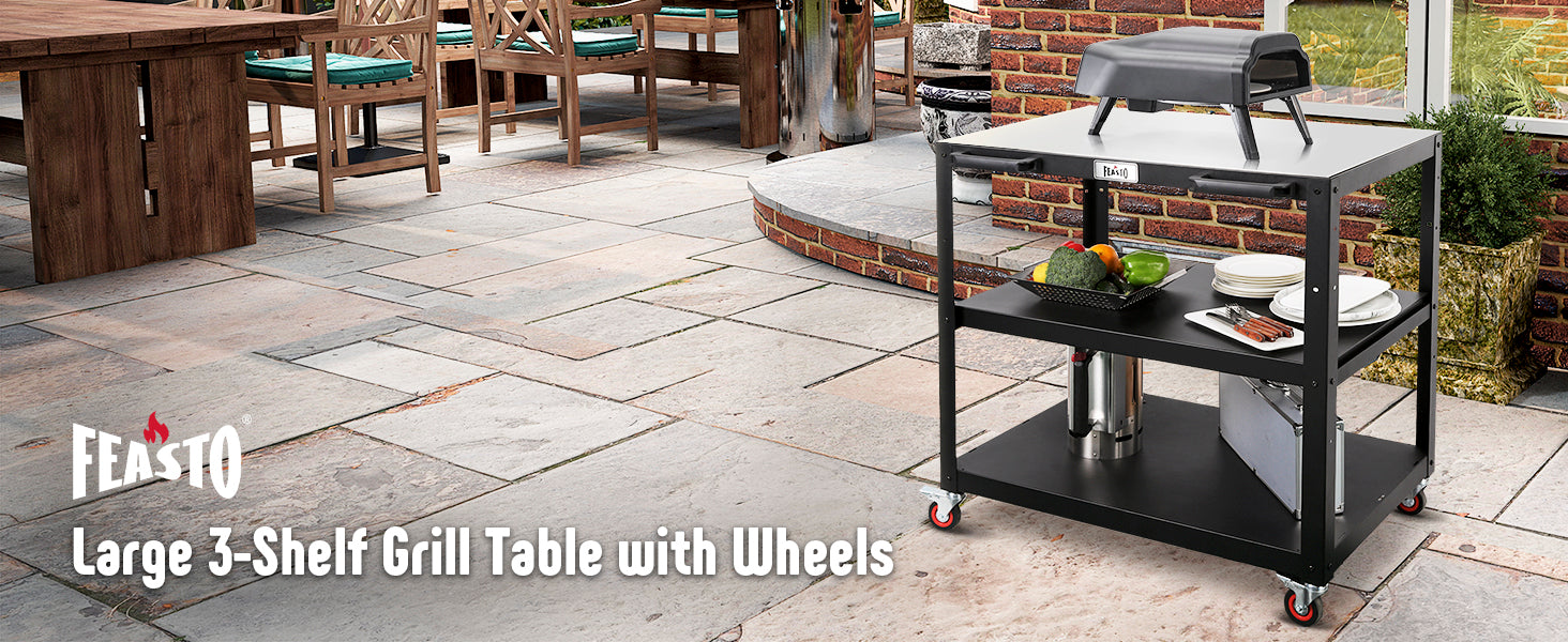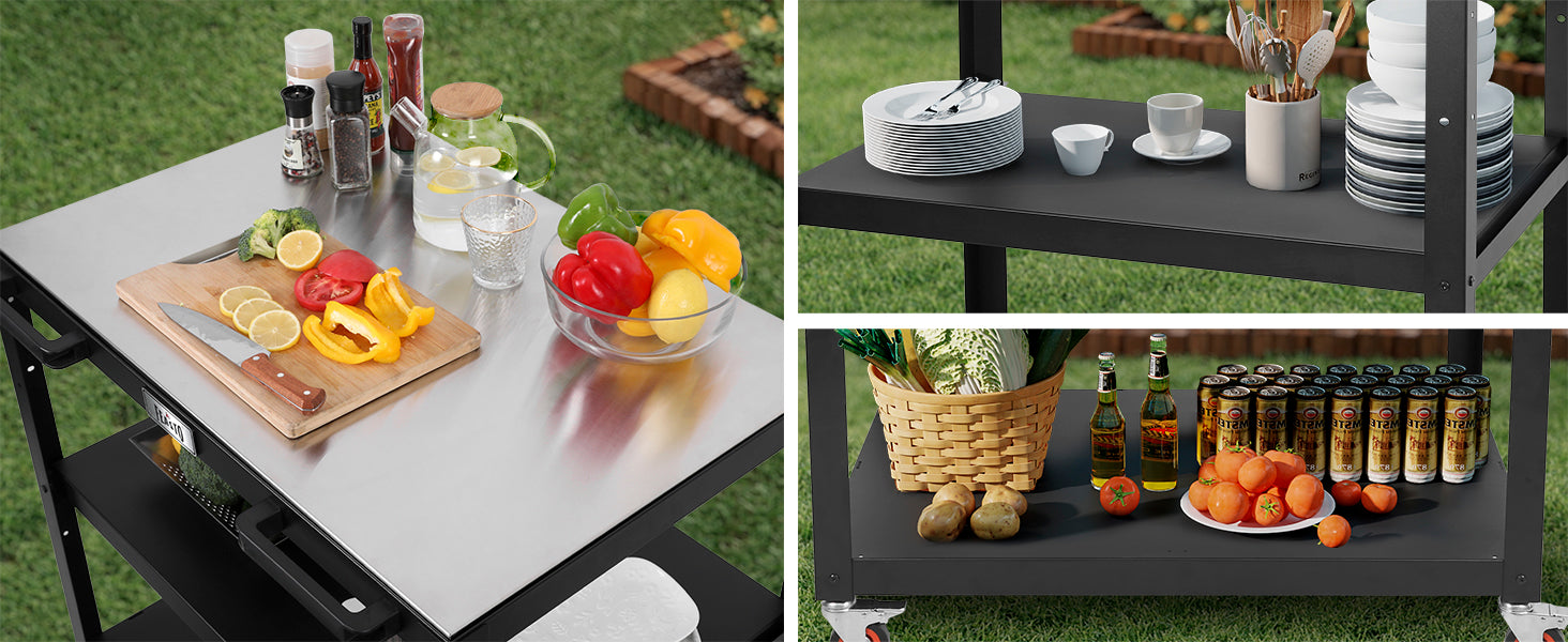 - Ample Space: 3-Shelf design facilitates an ample space for food preparation or ideal location for pizza oven,portable grill, serve you outdoor or indoor needs such as pizza oven stand table. Even Commercial Kitchen needs.