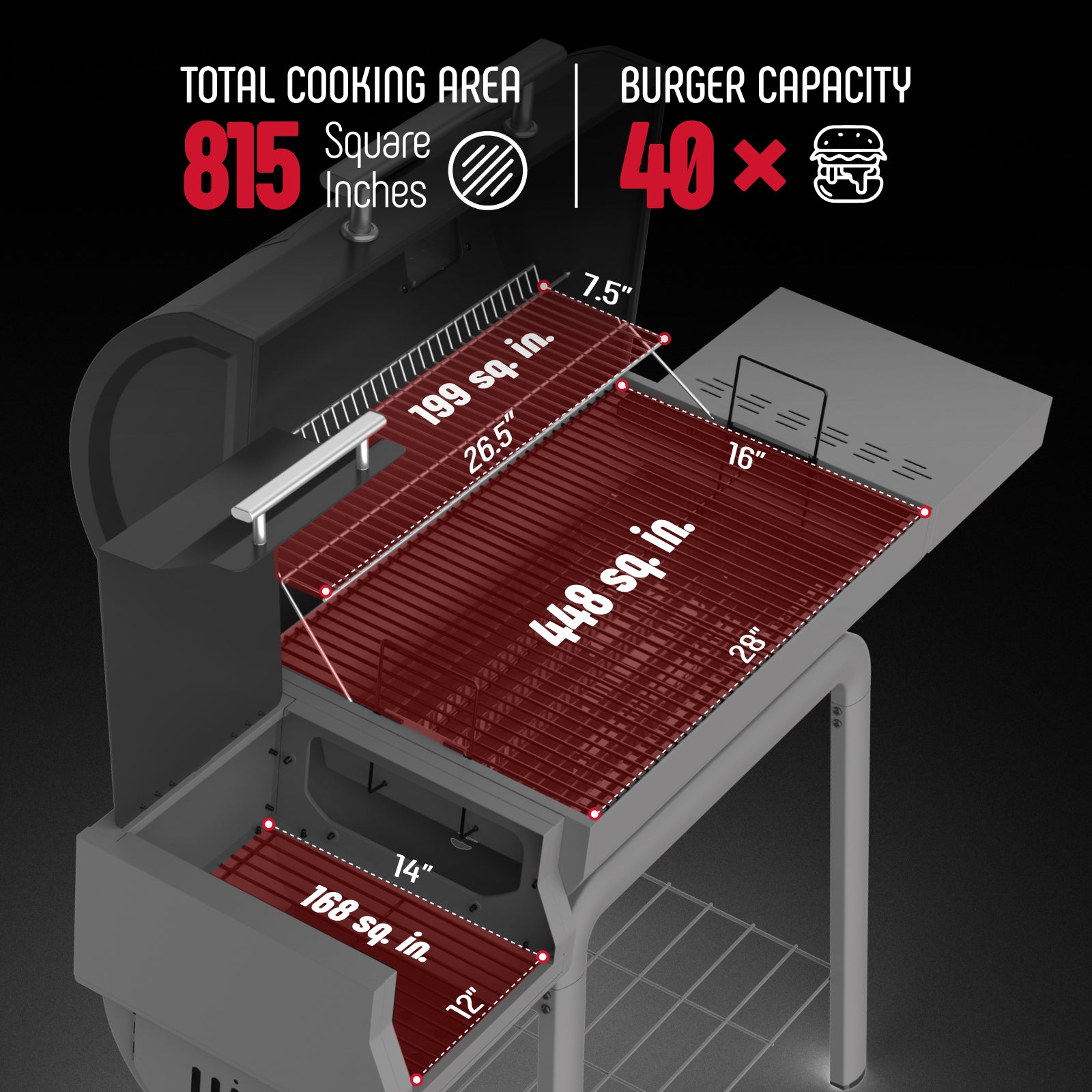 Feasto 30'' Outdoor Charcoal Grills with Cover, BBQ Grill with Offset Smoker and Side Table, 832 Sq. In. Heavy-Duty for Outdoor Backyard, Patio and Parties, Black