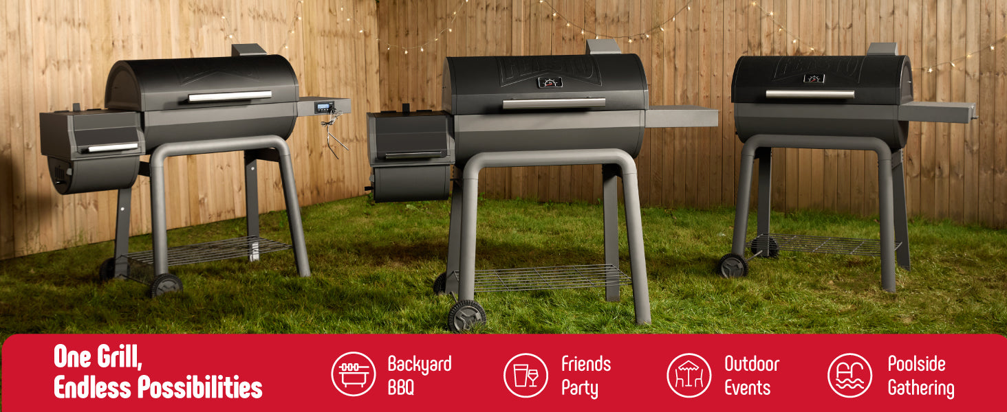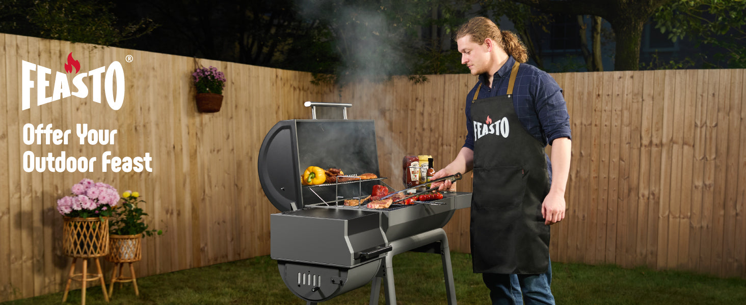 Barbecue is in season! Unleash the ultimate outdoor grilling experience with a heavy-duty, freestanding charcoal grill with offset smoker. Unlock endless BBQ possibilities and fun with its multi-functional design. Sizzle your meat and skewers to perfection with even heat, achieving that crispy exterior and tender interior. Infuse your food with rich, smoky flavors through the slow-smoking process, taking your taste buds on a journey. Built with robust, durable construction, it stands strong for large gatherings, ensuring stability and reliability. Whether for an outdoor party or a backyard bash, this outdoor grill is your go-to hero. Get ready to ignite your barbecue feast!