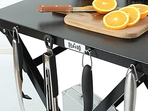 - Utility Table: For outdoors, it can be used as outdoor grill table or pizza oven stand in lawn and garden to accommodate different size portable grills or pizza ovens. For indoors, it’s perfect as laundry folding table, porch table. And the foldable table creates portability for RVs or camping while on the go.