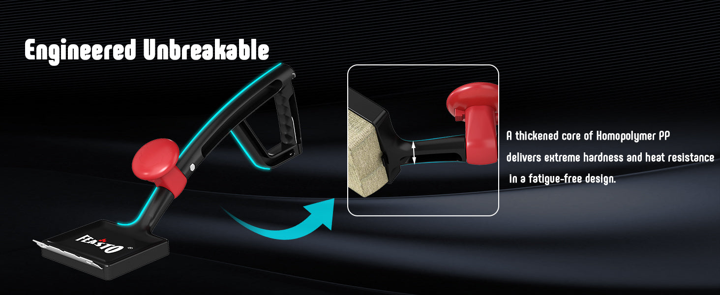 The 14 inch PP handle features a freely rotating knob that acts as a force multiplier. By providing a pivoting grip point, it allows your hand to maintain optimal angles when pushing the scraper or the sponge, transforming wrist strain into smooth, efficient cleaning motion. -