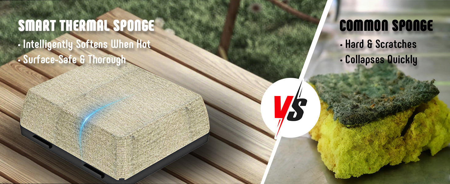 Utilizes the same thermal-active sponge material widely used in military and aerospace applications for extreme heat resistance. Upon contact with your hot grill, it instantly softens and expands, creating a perfect seal to generate intense, food-safe steam that dissolves grease and burnt-on residue effortlessly. -